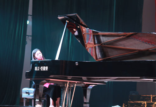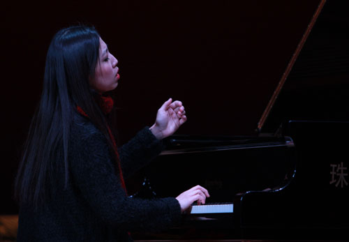 主持人向大家介绍了韩卉菁博士的主要成长经历后,音乐会在韩卉菁博士钢琴独奏莫扎特的《幻想曲》中拉开帷幕。行云流水般的弹奏让在场听众无不陶醉其中,一曲奏毕,韩卉菁博士就赢得了台下听众雷鸣般的掌声。在相继演奏完李斯特改编舒曼艺术歌曲《献词》、《魔王》,莫扎特的《c小调钢琴奏鸣曲》及拉威尔的《悲哀鸟》、《优美的晨歌》后,音乐会在韩卉菁博士加演的《浏阳河》旋律中画上了圆满的句号。