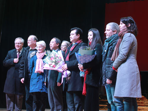 演出结束后,校长甘筱青博士与德国音乐家团队一起上台与韩卉菁博士合影留念。韩卉菁博士也与在场观众进行了亲切的互动。今晚的音乐会给每一位九院师生都留下了难忘的回忆,也将给开元艺术学院的学生们留下深深的启迪。