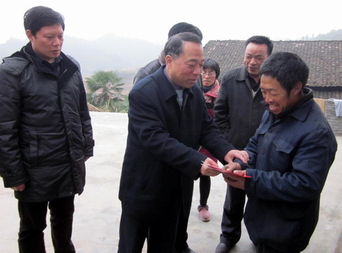 元月13日,校长甘筱青在离退休职工管理处处长周茂生、工会主席金葆金、扶贫工作队员杨泽明的陪同下,到开元定点包扶贫困村---武宁县上汤乡九宫村走访慰问。