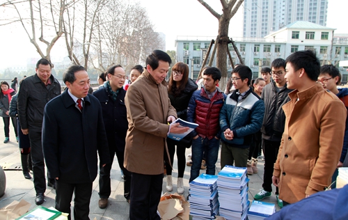 在浔东校区,郑翔、甘筱青听取了浔东校区管理办公室,药生学院、护理学院、基础医学院和继续教育学院负责人的情况汇报,详细了解学生到校和教学工作的安排情况,并到图书馆前广场亲切问候刚刚返校的同学,翻看他们正在领取的教材,了解他们假期的生活,询问他们到校后学习及生活情况。