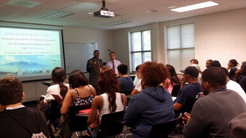 4月13日下午,甘筱青校长在萨凡纳州立大学社科楼作了题为“《论语》的公理化诠释”的英文讲座。萨凡纳州立大学四个学院的院长、部分教师和学生100余人聆听了讲座。许多教师和学生纷纷就讲座内容进行提问,甘校长一一作答。萨凡纳的师生表示甘校长的讲座让他们对儒家思想,对中国传统思想有了进一步的了解,称赞甘校长把中国儒家思想精髓带入萨凡纳州立大学。