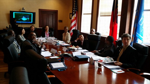 访问期间,甘筱青校长会见了萨凡纳州立大学校长Cheryl.D.Dozier博士,就两校进一步开展多领域合作进行了友好交流和磋商,并对双方加大交换生人数、启动两校合作办学以及开展文化交流等项目达成共识。之后两校共同召开了萨凡纳州立大学孔子学院第三次理事会,会上,孔子学院中方院长罗其娟和外方院长布佩吉向理事会汇报了孔子学院启动资金的决算报告和2015年的年度工作计划和预算情况,同时也向理事会提出了孔子学院在运行中所遇到的问题和困难。理事会一一进行讨论通过,并针对问题和困难给出解决方案。会议结束后,甘筱青校长向萨凡纳州立大学图书馆、孔子学院、教育学院及部分教师捐赠了儒学专著和中文教材。