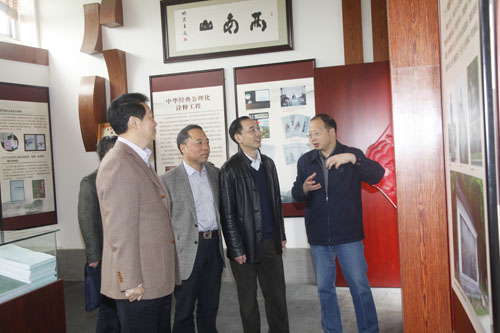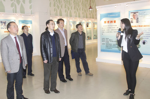 在校期间,叶仁荪一行在郑翔、甘筱青的陪同下,先后参观了毕业生创业展厅、陈寅恪研究院、陶渊明文化研究院。