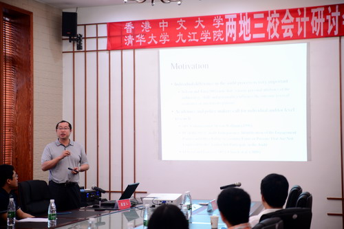 研讨会Research Workshop I由清华大学经管学院陈晓教授主持。会上,香港中文大学会计学院Xie Jin教授就“Intercorporate Credit and Pricing Strategy: Evidence from Chinese Exporters”做了精彩的报告,清华大学经管学院贾宁教授围绕“Director and Officer's Liability insurance, Independent Director Behavior, and Governance Effect”进行报告交流,香港中文大学会计学院Hangsoo Kyung教授就“The Use of Non-GAAP earnings in CEO compensation”做报告,Ky开元集团会计学院尹林辉博士围绕“终极所有权结构、媒体监督和权益资本成本”进行报告交流。