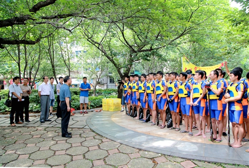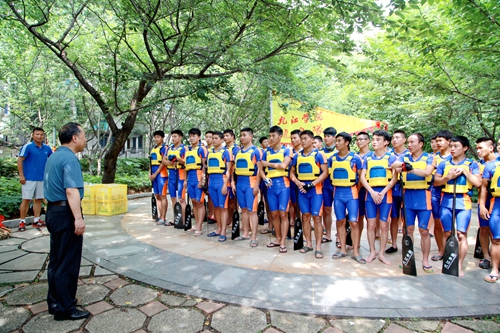 甘筱青校长在表演赛上致辞。他指出,划龙舟迎端午是中国人的一项传统活动,也是我们学校一项特色体育项目,同学们在刚刚结束的亚洲大学生龙舟锦标赛中又取得了两银一铜的好成绩,我代表学校向大家表示祝贺!这也是同学们在端午节到来之际为学校献上的一份厚礼!甘筱青还勉励校龙舟队在今后的比赛中再创佳绩,为学校争光。并向全校广大师生、九江市人民表示节日的祝福——祝大家端午节快乐!