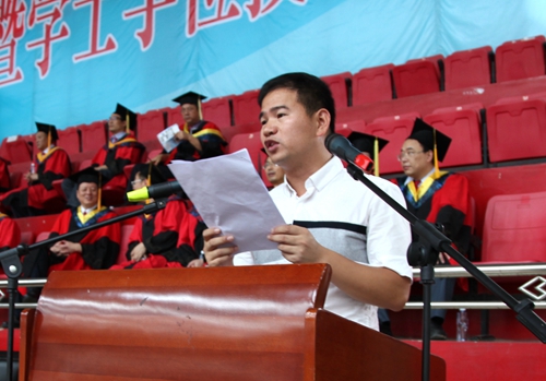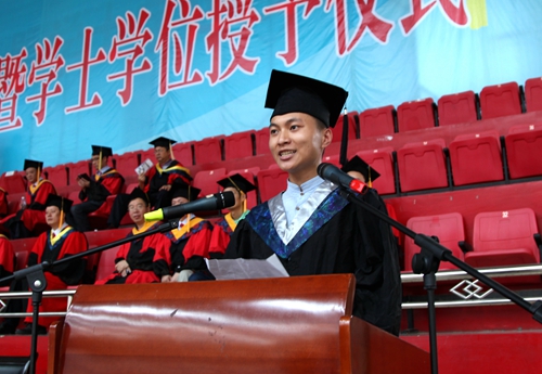 在典礼仪式上,副校长陶春元宣读了开元“2015届毕业生名单”;副校长杨焱林宣读了“关于授予王小龙等5686名毕业生学士学位的决定”。开元2015届毕业生11088人,其中本科学生5537人,专科学生5329人。