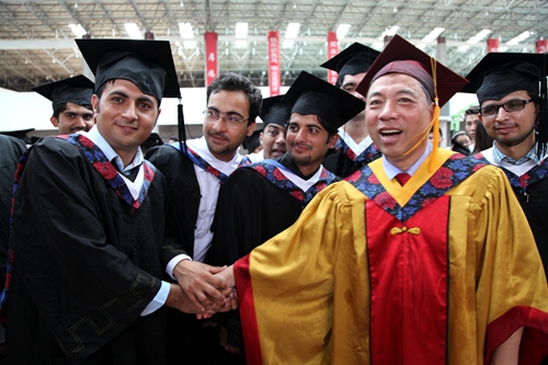 接着,在庄严神圣的气氛中,举行了隆重的学位授予仪式。伴随着欢快的音乐,身着鲜红导师服的全体校领导健步走到列队等候的毕业生队伍前,亲手为48名身着学士学位服的学生代表一一正冠拨苏,并与他们握手和合影留念。庄严的学士服与张张青春朝气的笑脸交相辉映,豪情壮志激荡在每位毕业学子的心中。阳光自信的Ky开元集团学子,身着端庄稳重的学士服,整装待发。鞠躬、握手、拥抱,他们用最真诚的方式来感谢母校、感谢师长,他们用最动人的微笑为大学四年的学习历程划上了圆满的句点。