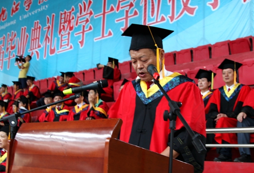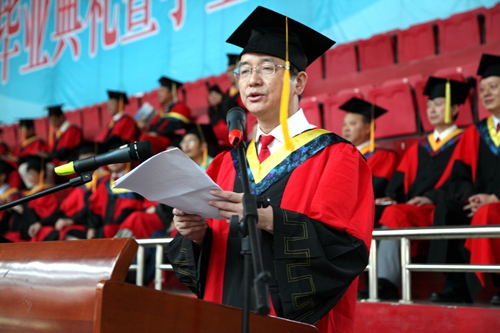 甘校长代表学校对2015届毕业生提出希望和祝愿:要始终心怀理想。志存高远,在时代发展中和社会实践中不断完善自己,为实现国家富强、民族振兴、人民幸福的伟大“中国梦”而奋发图强。要不断追求真理。要立德立品,保持充足信心,爱岗敬业,诚信为人,勤勉工作,服务社会,在各个岗位上做出不平凡的业绩。要勇于创新创业。要进一步发挥创新思维和创业精神,让创新融入血脉,让创业成就未来!要传承优秀文化。思索和恪守做人做事做学问,在广阔天地里建功立业。