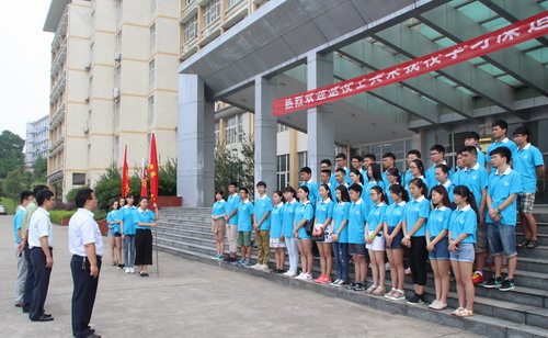 6月28日上午,开元2015年暑期三下乡社会实践活动出征仪式在厚德楼门口举行。副校长王万山出席出征仪式并为服务队授旗。学生处处长刘平、校团委书记闫来英和来自三个校区的42名师生参加了出征仪式。