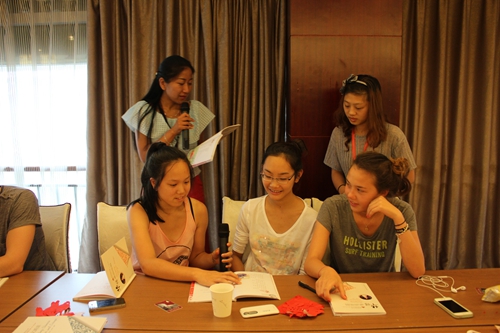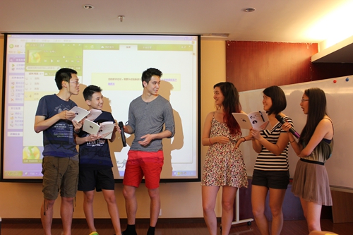 诗歌朗诵则展现了汉语的字正腔圆,王苓老师帮着每个营员纠正发音,强调中文是“用心吐字,用爱归音”。她希望每位同学在练习汉语之前打开口腔,大方的咬清每一个字音,把一句母语都说得饱满,说得流利。并且以诗歌“水调歌头”为核心,大家一遍遍的读着,都感受到诗歌内在的韵律和诗人寄予的情感。虽然“人有悲欢离合,月有阴晴圆缺”,但是“此事古难全”。中华诗歌能吟能唱,“水调歌头”读着美唱着也美。