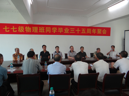 会上,甘校长代表学校向七七级物理班的各位校友回校聚会表示热烈欢迎。甘校长指出,学校的发展进步离不开历届校友为地方经济发展做出的贡献,希望各位校友继续关心母校发展,为母校发展出谋划策。母校永远是校友们的精神家园,欢迎大家常回家看看。