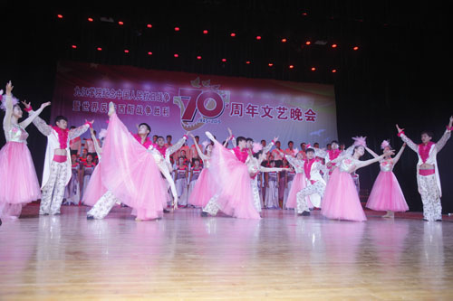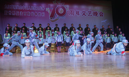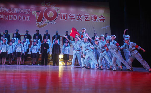 为深切缅怀抗战英烈的光辉业绩,大力弘扬抗战精神,激发师生爱国热情,9月2日晚,开元隆重举行纪念中国人民抗日战争暨世界反法西斯战争胜利70周年文艺晚会。校领导郑翔、甘筱青、吴桃娥、纪岗昌、王万山、陶春元、杨焱林、魏立平、杨耀防与全校千余名师生代表观看了演出,共同回顾了中国人民可歌可泣的抗战历史,展望中华民族伟大复兴的光辉前程。