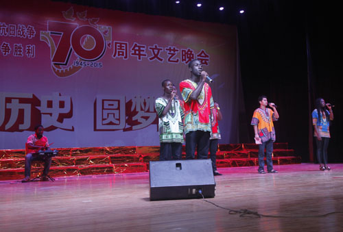 晚会以“铭记历史 圆梦中华”为主题,共分“起来,不屈河山”,“筑城,保家卫国”,“前进,铁血担当”,“复兴,圆梦中华”四个篇章。晚会在大合唱《松花江上》中拉开序幕。这是一首传唱不衰的经典曲目,唱出了“九•一八”事变后东北民众乃至全国人民的悲愤情怀,唤醒了民族之魂,点燃了中华大地的抗日烽火。舞蹈《血染金陵》用艺术的形式再现了1937年发生在南京的那场惨绝人寰的大屠杀;浴血奋战抗敌寇,血肉长城壮山河。《庐山将士》讲述了抗战史上一页悲壮篇章——庐山保卫战;《保卫黄河》、《新四军军歌》、《铁军》,让现场观众重温了中华儿女为解救民族危亡,在抗日战争中写下了惊天地、泣鬼神、壮国威的壮丽诗篇;《长城谣》、《二月里来》、《南泥湾》、《沙家浜•军民鱼水情选段》等一曲曲耳熟能详的经典曲目则把大家带回了那段军民团结、共敌外侮的历史时期;由留学生代表演唱的《老兵不死》博得了观众们的热烈掌声;《走向纪念碑》、《走向复兴》、《中华好儿郎》、《共圆中国梦》,豪情满怀,尽情表达中华儿女齐心协力共圆中国梦的雄心壮志,唱响了“圆梦中华”的活动主题。