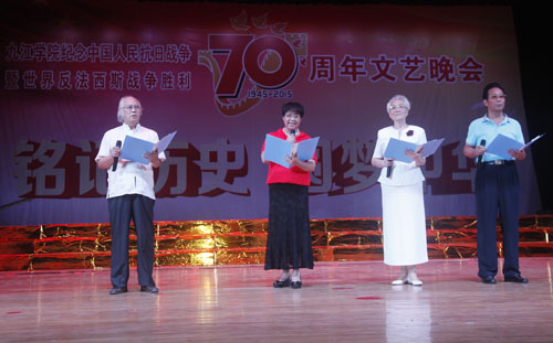 演出开始前,甘筱青校长发表致辞。他强调,70年前,中国人民前赴后继,取得了抗日战争的伟大胜利;世界人民共同奋斗,取得了反法西斯战争的伟大胜利。70年前的胜利,是无数先烈抛头颅、洒热血而绘就的壮丽画卷;是无数仁人志士坚持正义、追求进步而书写的宏大史诗。他指出,在日本帝国主义侵略面前,中国人民没有消沉,没有屈服,团结合作,抗日救国,其根本原因就是植根于中华民族内心中以爱国主义为核心的民族精神。他希望全校师生在铭记历史、缅怀先烈的过程中,勿忘国耻,珍爱和平,勤奋学习,扎实工作,为实现中华民族伟大复兴的“中国梦”而努力奋斗。