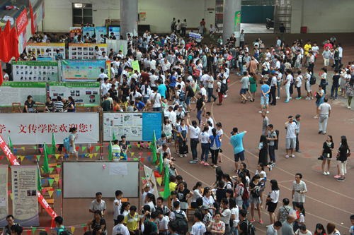 为方便提前来校的新生报到,学校的迎新工作9月3日下午就已经开始。9月4日清晨迎新工作全面展开。5点30分,学校13辆迎新校车分赴九江火车站、庐山火车站和九江长途汽车站,迎接新同学和家长到各自校区报到。当校车驶入报到现场时,早已等候在这里的迎新工作人员和志愿者高举着各个学院的引导牌在车门处热情地招呼着自己学院的学弟、学妹,带领他们到学院接待点存放行李、办理各项报到手续。