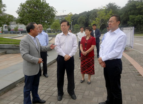 甘筱青首先陪同郭奕珊一行人员参观了八里湖校区周边的体育设施。在参观过程中,甘筱青向郭奕珊介绍了学校利用社会体育资源办学的新特色。八里湖校区紧邻九江市奥林匹克体育中心,这里有丰富的体育设施,学校采取与体育中心合作开展体育办学,解决了体育场馆闲置问题,带来了新区人气,服务了地方经济,同时还解决了高校资金不足问题,开创了高校与社会资源对接办学的新模式。