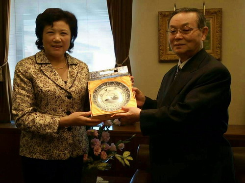 吴副校长向山梨学院大学校长古屋忠彦赠送瓷盘