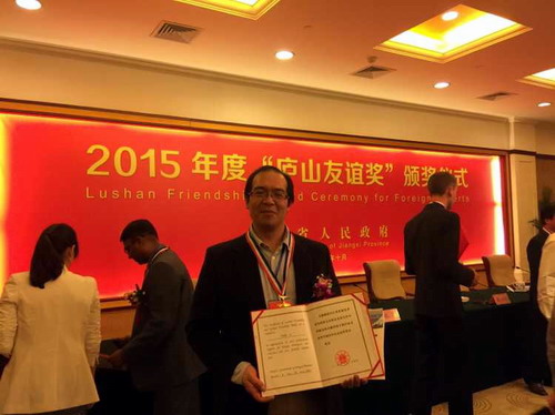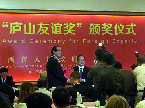 殷立夫领取2015年度“庐山友谊奖”