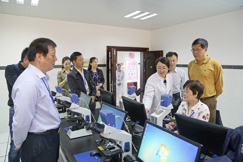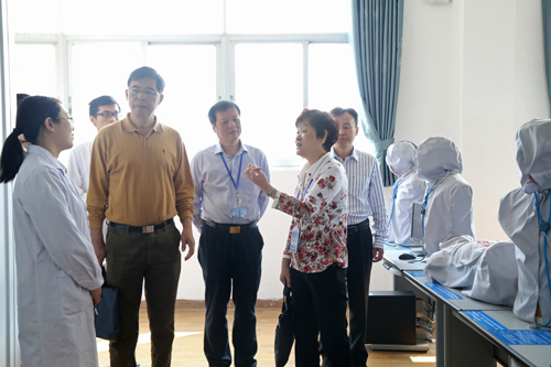 在临床教学实验中心,专家组细致考察了数码显微互动实验室、眼科技能训练室、耳鼻喉科技能训练室、护理模拟病房、儿科技能训练室、影像诊断实验室及远程会诊系统、中央监控室、内科基础技能训练室、模拟ICU/NCU病房、动物实验室和模拟手术室等处,重点观摩了护理实验演示“静脉穿刺术”、“六部洗手法”、高级产妇综合模拟人自然分娩及手动分娩过程、智能综合模拟人生命支持训练演示、心肺复苏术、影像读片等实验项目,了解各项设备设施功能、实验教学实施、学生阶段培养与考核、大学生技能竞赛等情况。在教学楼,专家查看了临床医学院/附属医院教学管理科、教研室、PBL教室,详细了解了教学计划、课程落实、毕业综合技能考试设计方案等情况。