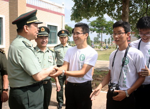 常部长接见了在陆军学院任教的3位孔子学院汉语教师志愿者。常部长很关心志愿者们的生活,对3位汉语教师寄予很大的希望。他表示,中国军事专家组要和志愿者亲如一家,互帮互助,共同促进中柬友好交流。