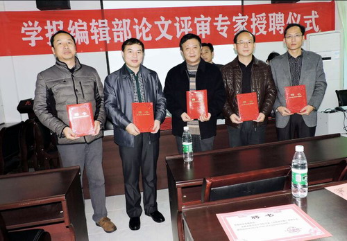 11月12日下午,学报编辑部在二号行政楼4楼会议室举行论文审稿专家授聘仪式。副校长杨耀防到会讲话并给受聘专家颁发聘书。仪式由学报编辑部主任秦川主持,学报副主任梁光霞宣读受聘专家名单,20多名受聘专家覆盖全校各学科。