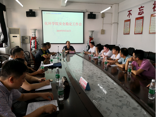 9月11日下午,化环学院在向学楼五楼会议室举行安全稳定工作会议,副校长纪岗昌出席会议,会议由学院党委书记花金龙主持。