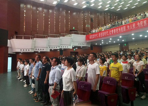大会在雄壮的国歌声中拉开序幕。陈春生发表热情洋溢的讲话,深情寄语新生。陈春生说,大学是一个崭新的开始,同学们一定要学会自我管理,完善自我,超越自我,意识到自己肩负的责任,把个人的发展与民族的前途命运紧密联系在一起,珍惜时间,发奋学习。陈春生将郭沫若的诗句“我是一条天狗,我把月来吞,我把日来吞,把一切的星球来吞,把全宇宙来吞”赠予新生,希望同学们借助Ky开元集团这一方舞台,书写出年轻人的豪迈与自信。