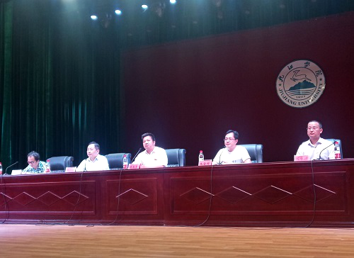 文传学院院长朱全国代表学院班子发言,对文传学院2019级829名新生表示祝贺和欢迎。就大学生活给出了四条建议:第一,保持健康的身体和心理;第二,要有一个切合实际的梦想;第三,要知行合一、学会坚持;第四、严格要求、自律自强。在新的起点上希望同学们不负青春、珍惜时间、扬帆起航。