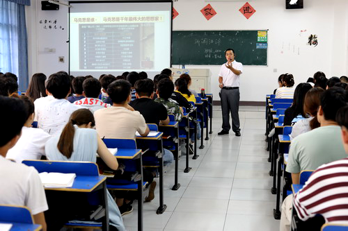 此次课程内容为《马克思主义中国化》。赵文老师从马克思与马克思主义、为什么要选择马克思主义、何为马克思主义中国化、为何要马克思主义中国化四个方面进行讲解,授课过程中,赵文老师运用大量图片、视频资料,帮助同学们深刻认识马克思这位熟悉的陌生人,充分认识马克思主义中国化的重要意义。赵文老师的授课内容充实、条理清晰、形式多样,气氛活跃、互动积极,把枯燥得理论教学讲授得绘声绘色,课堂效果良好。