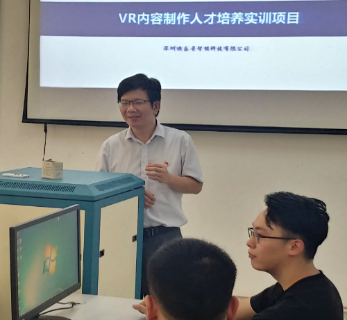 此次培训班为期3天,主要培训内容有认识VR、VR设计、VR制作等,由深圳迪乐普智能科技有限公司研发工程师担任讲师。课程采用授课加项目实操方式,帮助参训教师循序渐进地了解并掌握VR内容制作的基础知识、开发流程、核心功能等。