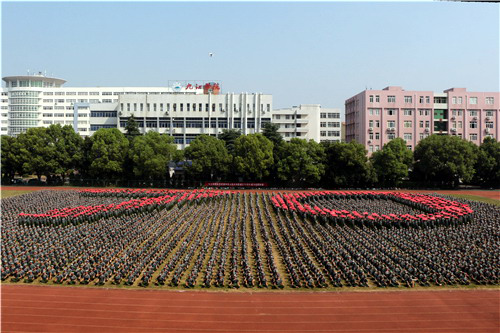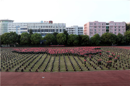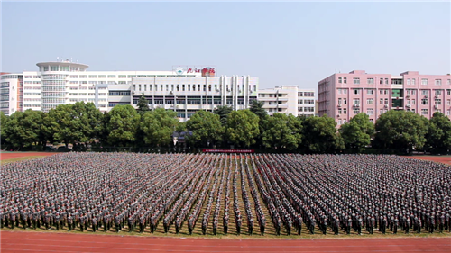 随着口令的变化,“树立远大理想、热爱伟大祖国、担当时代责任、勇于砥砺奋斗、练就过硬本领、锤炼品德修为。祖国万岁!祖国万岁”的宣言声豪气冲天,此起彼伏,迅速组成一个巨大的红色“70”,向新中国成立70周年献礼。最后,四周同学向左右奔跑,一幅两千人组成的巨幅中国地图跃然而出,现场学生发出“不忘初心,牢记使命,永远奋斗,报效祖国”的铿锵誓言。