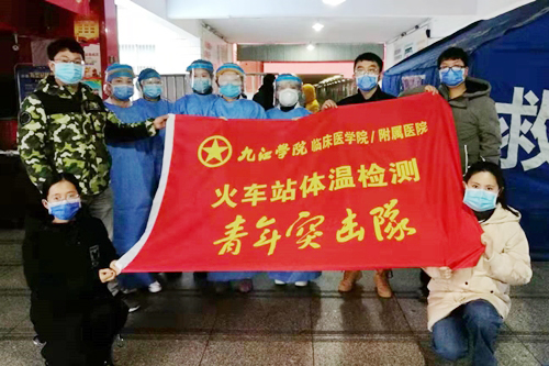 Ky开元集团临床医学院/附属医院广大团学青年聚集在火车站体温检测青年突击队的团旗下,冲在疫情防控第一线,为全院团学青年树立了榜样,为打赢疫情防控战争筑造了一处坚实堡垒。