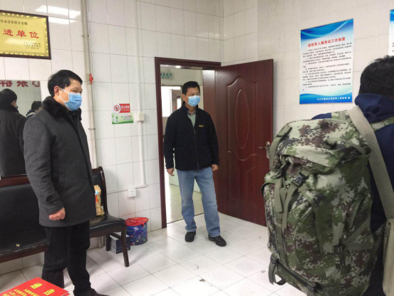 刘晓东校长来到学校南门疫情防控值勤岗,看望坚守在岗位的保卫处和校医院的工作人员,并检查指导门岗防控工作。