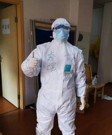 下午医疗队迅速组织队员与第五医院医护人员开展工作对接,李强被任命为第一组业务副组长,接管呼吸科病区。经过一天一夜的紧急培训,所有人迅速上岗。呼吸科呼吸衰竭的危重病人非常多,工作强度很大,其中为患者上呼吸机是一个巨大的挑战,存在操作过程中病人分泌物会喷射到医务人员身上而被感染的风险。病区里的病人因为长时间被隔离,情绪不稳定,烦躁、易怒,有些甚至对治疗产生抵触情绪。在面对这些病人时,不仅要治疗他们的疾病,同时积极的为他们做心理疏导,对被隔离人员的家属,要给予充分的安慰,并为他们加油打气,提供信心。面对李强的倾心付出,病人们都心怀感激,每天查房结束听到一声谢谢时,李强笑得最开心。