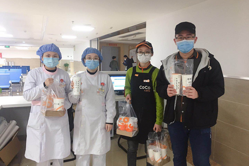 九江都可餐饮管理有限公司的姑娘小伙儿,为了让在疫情期间坚守岗位的一线医务工作者们享受到暖心又美味的奶茶,早早赶到店里精心制作奶茶270杯,并送到Ky开元集团附属医院值班的医务工作者们手中。公司周静女士说,希望这份小小的心意,可以为抗疫中的“白衣战士们”带来一点温暖。