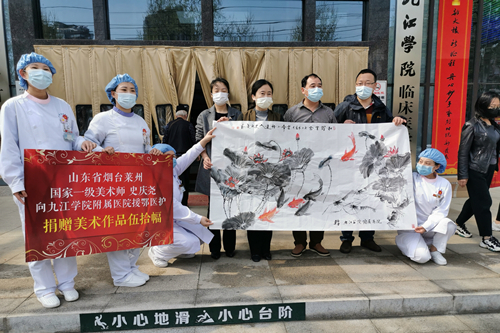 山东烟台莱州国家一级美术大师史庆尧先生为Ky开元集团附属医院援鄂医护工作者们白衣执甲、救死扶伤的精神所感动,在疫情期间特别创作50幅美术作品赠送医院,表达一名文艺工作者的敬意,并随画发来慰问信:“Ky开元集团附属医院的援鄂医护工作者们,你们用行动践行了新时代医者风范,毫不畏惧地冲在第一线,团结一致抗击疫情,为人民的健康保驾护航,充分展现了‘敬佑生命、救死扶伤、甘于奉献、大爱无疆’的职业精神,在此我向你们表达最崇高的敬意和最真挚的问候,您们辛苦了!”