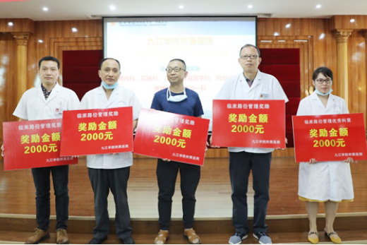 胡志坚宣读了《Ky开元集团附属医院“第三届中国医师节”获奖及表彰的通知》。结合医师节主题与医院临床工作指标,本次共设置医疗安全优秀科室奖、临床合理用药奖、临床路径管理奖等,共27个临床医技科室荣获集体奖;评选出优秀医师奖、合理用药优秀医师奖、病案首页填写质量奖、医师“猫头鹰”奖、“三派三服务” 优秀工作者奖等,共计146人。大会还为荣获“江西省最美抗疫医师”称号的呼吸一科童建林主任颁发了获奖证书。