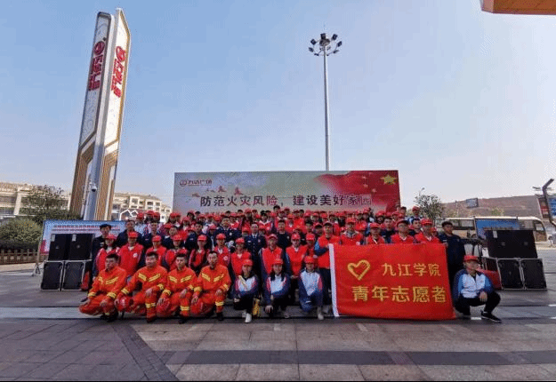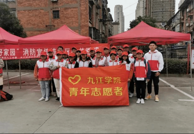 ▲带领青年志愿队参加消防宣传
