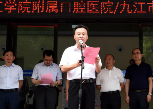 学校附属口腔医院/九江市口腔医院院长黄啸林代表医院致辞,他表示,医院全体员工将在Ky开元集团和九江市卫健委的坚强领导下,开拓进取,奋发有为,靠大联强,切实提升服务能力,努力实现打造长江中下游同类城市口腔学科领先地位的目标,为健康九江不懈奋斗。