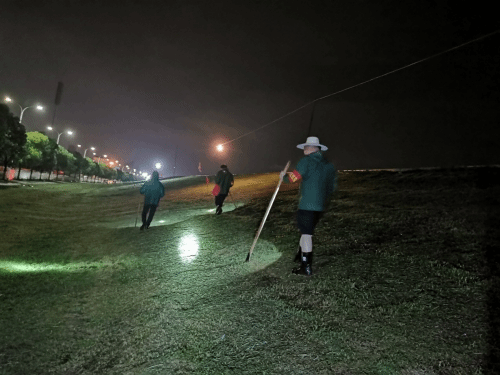 7月11日凌晨,艺术学院副院长欧阳时来带领王祖刚、吴畏、谭丹武3名党员教师赶赴赛城湖值守堤段,冒着大雨为确保堤口的安全通宵巡查值守。几位党员同志认真学习巡堤查险要诀及防汛的各项要求后,在欧阳时来的带领下,每隔一个小时对堤口可能存在的安全隐患进行仔细排查,做好巡堤查险记录,不放过一处隐患、不忽视一处细节,确保堤口零风险、零渗水。