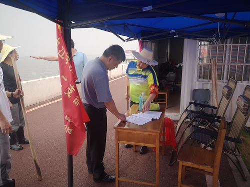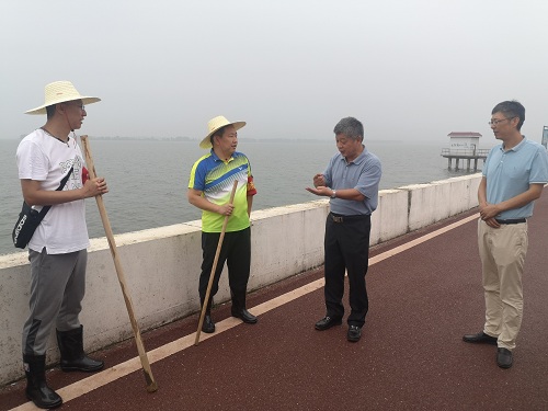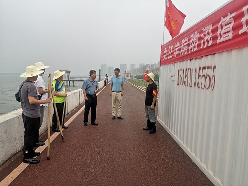 7月10日下午,副校长夏启国一行到开元赛城湖城西港堤防汛值守堤段,检查指导防汛一线后勤保障工作,看望慰问当值教师职工。后勤管理处处长姜东升随同检查。