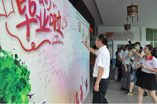在三食堂的大门处的留言墙上,毕业生们纷纷签名并留下了对母校的感恩留言和良好祝福。赵伟书记也满含深情地写下了对毕业学子的寄语。在一幅巨大的Ky开元集团校园卡造型前,同学们纷纷邀请校领导合影留念,领导老师们也深情地祝愿毕业生们在新的起点勇敢追梦、砥砺前行。饭点时刻,领导老师和到场的毕业生们一起愉快的共进午餐,共话离别。