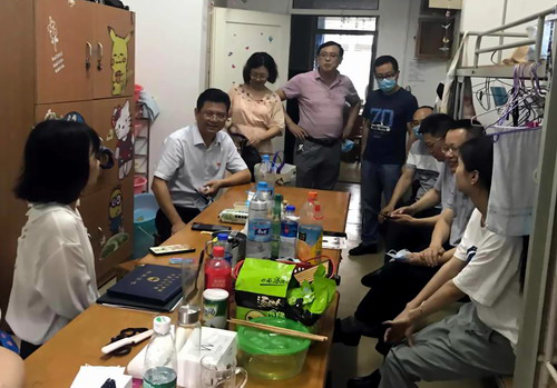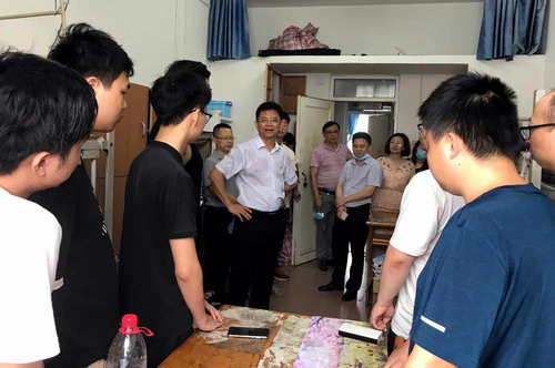 在33栋6楼男生宿舍,毕业生们主动向校长汇报大学四年的学习生活情况及各种收获,感谢母校的关心和培养。刘晓东表示,疫情给同学们的毕业季造成了影响,但也为同学们的价值观带来了磨练,为每个人今后的成长奠定了更加坚实的思想基础,他叮嘱同学们一定要做好防护,健康安全永远放在首位。刘晓东真诚祝愿同学们用拼搏的精神换来美好的人生,以优异的成绩为学校增光添彩。