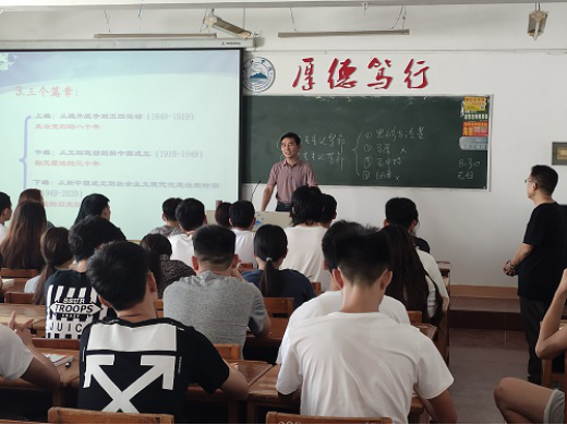 高明老师所上课程为《中国近现代史纲要》。作为开学第一课,高明老师在简短而热情地问候之后,主要从“三个历史”、“三个选择”、“三个篇章”等三大视角,结合历史与现实中的具体实例,向同学们介绍了《中国近现代史纲要》这门课程的主要内容。课堂上,同学们聚精会神地听课,积极主动地参与教学互动,课堂学习氛围良好。魏立平认真聆听、认真记录,并时刻关注同学们的学习状态。
