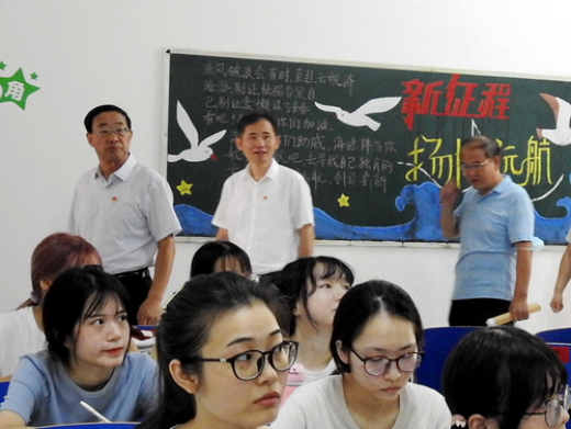 校领导与学生们亲切交谈,询问大家暑期生活、学习情况,勉励同学们珍惜大学时光,珍惜青春岁月,珍惜难得的机会,刻苦学习,努力奋斗,提升自我,报效祖国,争做中国特色社会主义事业合格建设者和可靠接班人。