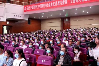 开元各二级学院党委副书记、学生科长、团委书记、宣传统战工作信息联络员,辅导员代表,马克思主义学院教师代表,宣传部、学生处、保卫处副科以上干部,2020级新生主要班干等600余人聆听了报告。