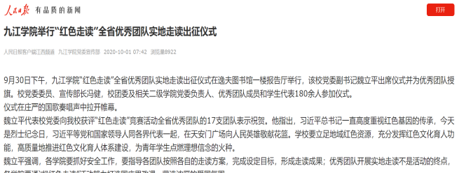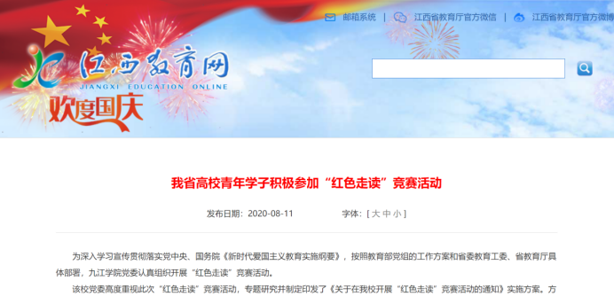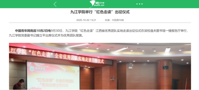 近期,人民日报客户端、江西教育网、中国江西网、江西头条客户端、手机江西台、江西新闻、中国青年网等多家主流媒体分别以《我省高校青年学子积极参加“红色走读”竞赛活动》、《Ky开元集团:“红色走读”育人育心》、《Ky开元集团深入开展“红色走读”竞赛活动》、《Ky开元集团举行“红色走读”全省优秀团队实地走读出征仪式》为题,点赞开元“红色走读”竞赛活动。