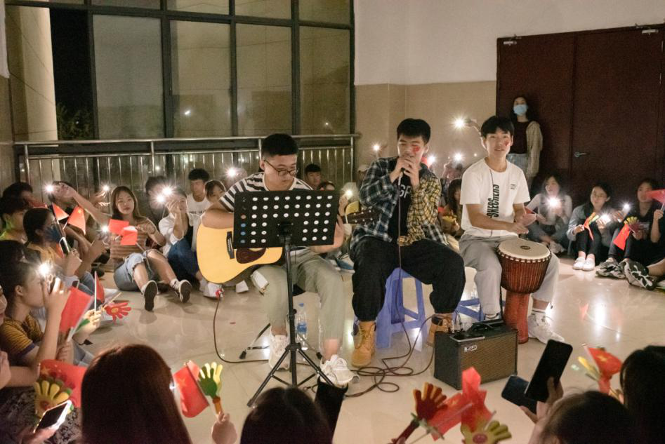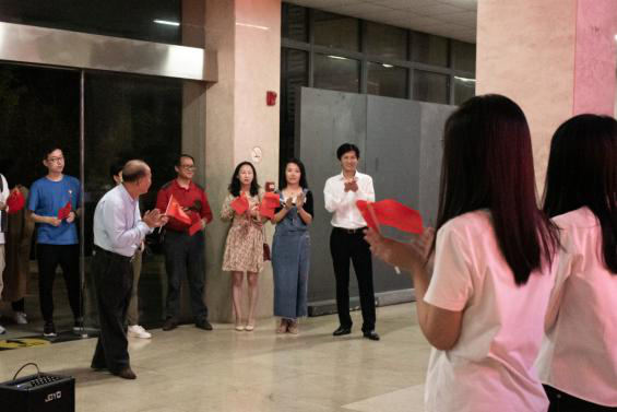 举杯邀明月,家国两团圆。为迎接国庆、中秋“双节”以及2020级新生的到来,艺术学院于10月1日晚7点在艺术大楼开展国庆中秋“快闪”校园主题活动。副校长查振华,艺术学院党委书记王春生等班子领导及2020级全体师生共同参加。