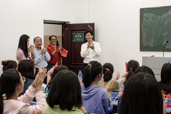 查振华全程参与了活动,他对艺术学院浓厚的艺术氛围给予了充分肯定。他说;“今天是传统的中秋佳节和国庆节,是继2001年后再次双节临门,也是2020级同学进入大学生活的第一个节日。我们和大家一起共度节日,共同祝福我们伟大的祖国繁荣昌盛,也祝愿同学们在Ky开元集团艺术学院这个大家庭里快乐学习,健康成长,顺利成才。”随后,查振华一行走进“新华书吧”,看望仍在积极备战考研的学生,并对考研学生给予了鼓励。