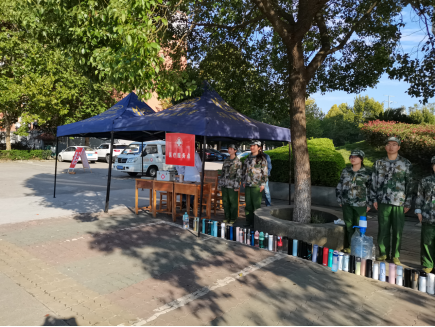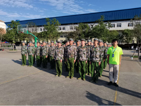“同学们好,你们辛苦了!”、“校长好,为校增光!”训练场上,同学们精神饱满,口号嘹亮,步伐整齐,各项训练正在有条不紊地进行。